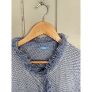 J. McLaughlin Lexa Knit Fringe Trim Coastal Blue Sweater Cardigan Jacket XL