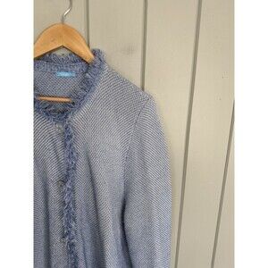 J. McLaughlin Lexa Knit Fringe Trim Coastal Blue Sweater Cardigan Jacket, size XL.