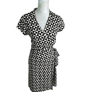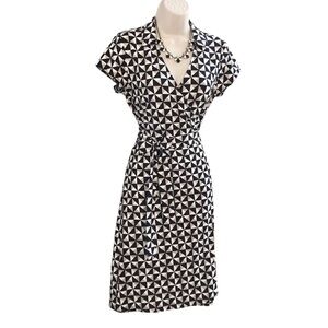 Travel, career, wrap dress, Diane Von Furstenburg vibe, comfort, stretch, geometric