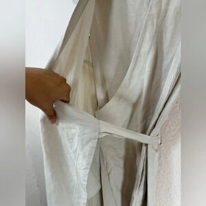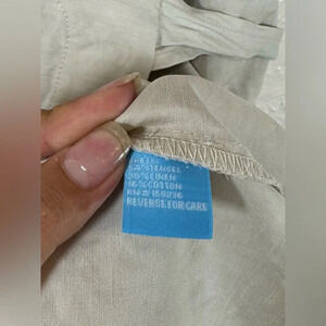 J. McLaughlin Natural Color Collared Sleeveless Wrap Dress Women’s Size Medium. Tencel, Linen and Cotton Blend. Hand wash. Has a faded spot on the back. Has pockets.