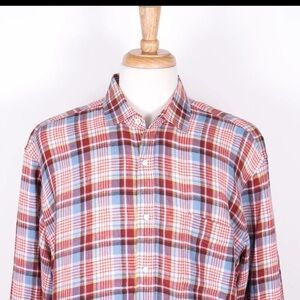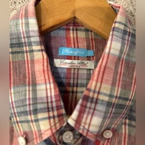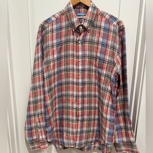 J. McLaughlin Linen Red/Blue Plaid Casual Button Up Shirt - SZ L