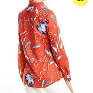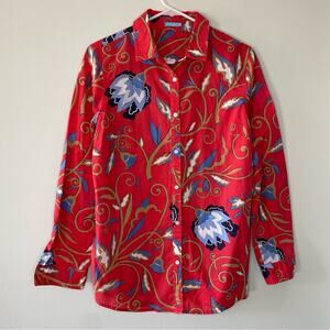J. McLaughlin Lois Long Sleeve Coral Floral Print Button Down Shirt Size M