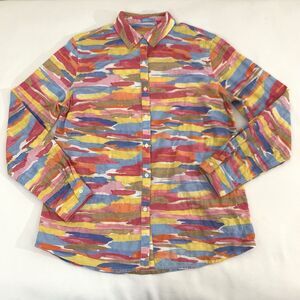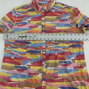 J McLaughlin Lois Shirt M Button Up Pink Colorful Tropical Watercolor Resortwear
