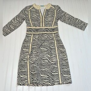 J. McLaughlin Lola Animal Zebra Print Dress 3/4 Sleeve V-Neck Catalina Cloth XS