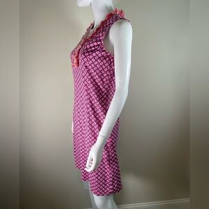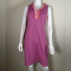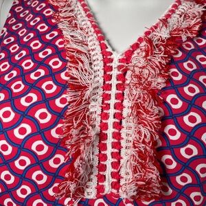 J. McLaughlin Lola Fringe Dress Sz S Red White Geometric Print Catalina Cloth
