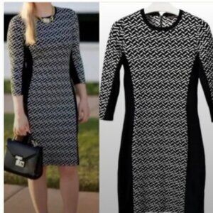 J. McLaughlin Marnie Black & White Jacquard Colorblock Sweater Dress - Small
