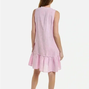 Dress, the perfect addition to any woman's wardrobe. This stunning dress, available in a beautiful peony hue, features pintuck details, a frayed neckline, and a playful ruffle hem. Its convenient side seam pockets add a practical touch, making it easy to carry your essentials with you wherever you go. Made from 100% linen, this dress is comfortable, breathable, and perfect for warm weather. This dress offers a flattering A-line silhouette that will flatter any figure. The J.McLaughlin brand is known for its traditional sportswear with stand-out fabrics and prints, and the Maryann Linen A-Line Dress is no exception.