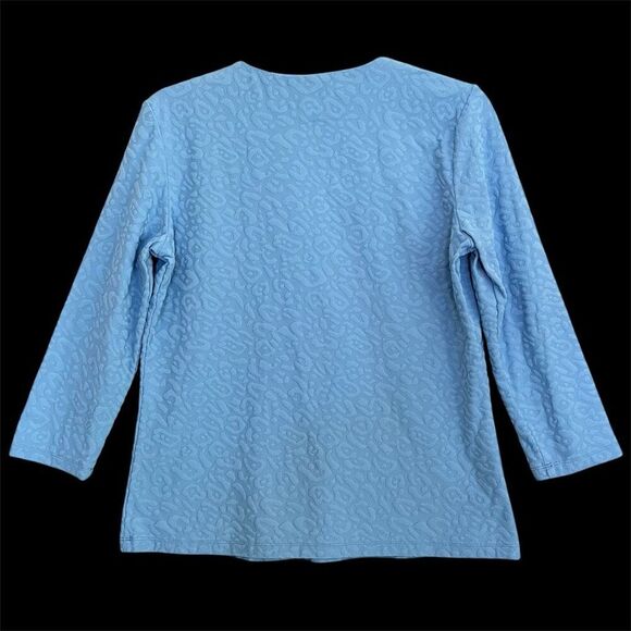 J. McLaughlin Matelassé Carly Top Womens Size Medium Blue Leopard Cheetah Embossed