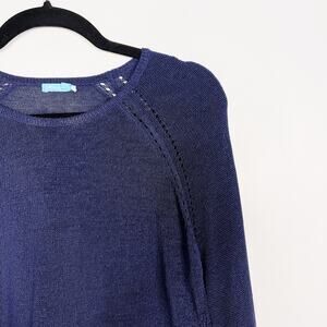 J McLaughlin Medium M Blue Loop Stitch Raglan Long Sleeve Sweater Cotton Blend