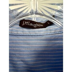 J. McLaughlin Men's Blue White Striped Cotton Long Sleeve Button Down Shirts Size Large