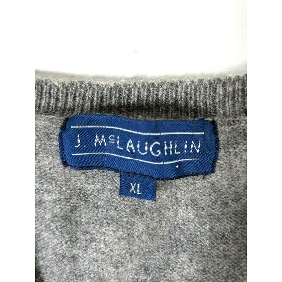 J. McLaughlin Mens XL 100% Cashmere Knit Gray V-Neck Soft Beautiful Preppy. Measurements in photos. Very good pre-owned condition. No rips, holes, or stains. Comes from smoke free environment. Softer fuzzier on the inside. In beautiful condition. Want to keep it for me but not my size. Measurements in photos. MSRP on site around $428.00