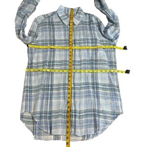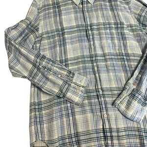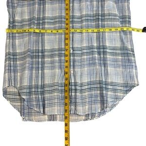 J McLaughlin Mens Large 100% Linen Plaid Oxford Shirt Summer Classic Coastal. Great pre-owned condition, please review pics for measurements, shirt is very long.