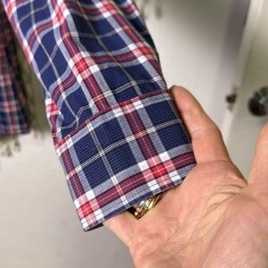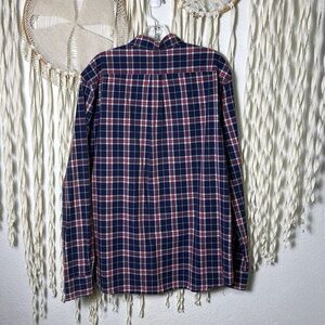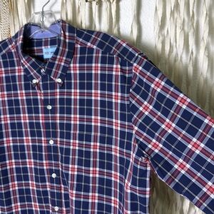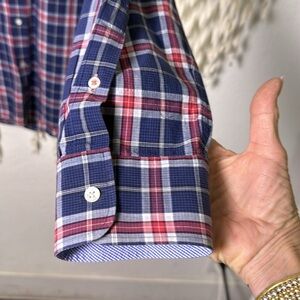 J. McLaughlin Men's Navy and Red Plaid Long Sleeve Button Down Shirt Modern Fit