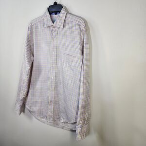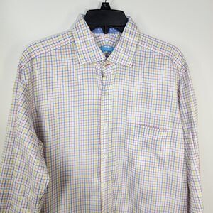 J McLaughlin Mens Shirt Medium White Check Long Sleeve Preppy Pocket Button Up