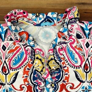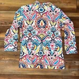 Chic blouse with vibrant floral design to add brightness to your wardrobe. Features a mix of bold colors. Ideal for a stylish look.
