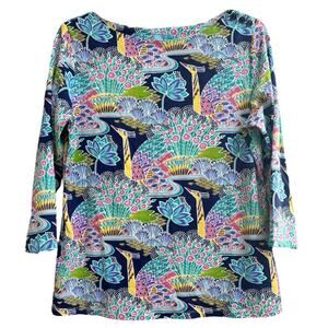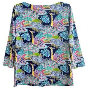 J. McLaughlin NWOT Wavesong Sz L Tee Catalina Cloth Paradise Peacock 3/4 Slv Top