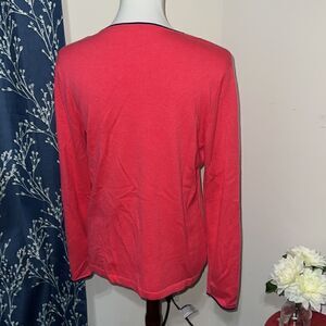 J. McLaughlin Navy Trim Coral Pink Sweater Long Sleeves Knit sz L Large