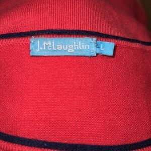 Good, preloved condition. J. McLaughlin Navy Trim Coral Pink Sweater Long Sleeves Knit.