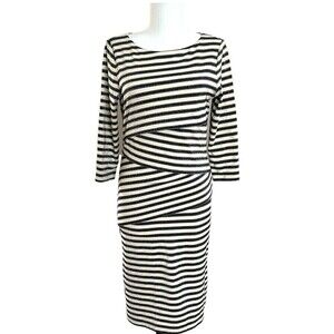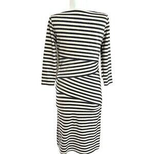J. McLaughlin Nicola Dress Layered Stripe Black Cream Metallic Silver size XS
