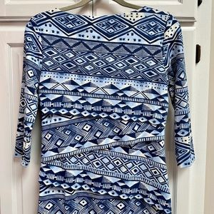 J. McLaughlin Nicola dress - Catalina cloth. Print is Lekha Geo Stripe in Royal blue and white. Size small. In excellent preowned condition.