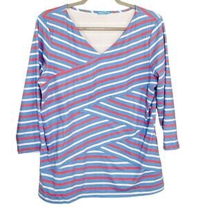 J. McLaughlin Nicola Layered Top Criss-Cross Striped 3/4 Sleeves Blue Size XL