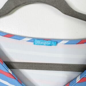 J. McLaughlin Nicola Layered Top Striped Catalina Cloth 3/4 Sleeves Size Large L. Very good, preowned condition. V-neckline. Layered pieces throughout design.