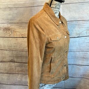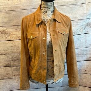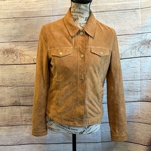 J. McLaughlin Oakley Jacket 100% Goat Suede Pockets Gold Buttons Size XS