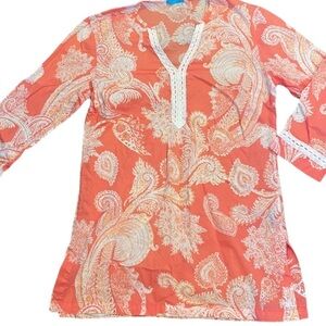 J. McLaughlin Orange Paisley Tunic Detailed Trim Size XS