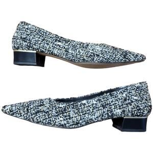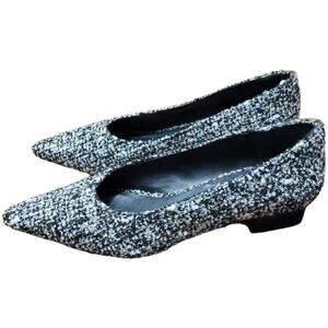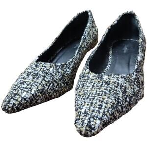 J McLaughlin Owyn Womens Tweed Flats Sz 9.5 Black Gold Block Heel Spain MSRP$268