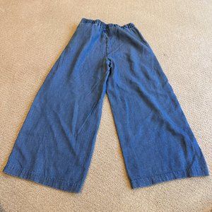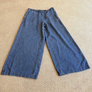J McLaughlin Pant Chambray Wide Leg Crop Lyocell Linen Boho Coastal Grandma Sz 4