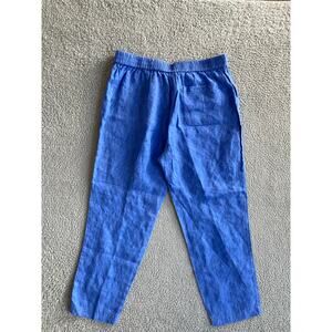 J, McLaughlin Pants Medium 100% Linen Drawstring Straight Leg Ankle Blue Beach Boho