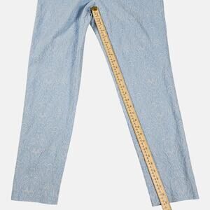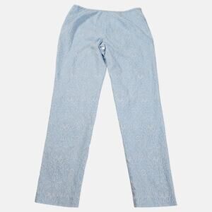 J McLaughlin Pants Womens Size 10 Blue White Jacquard Stretch Casual Career