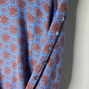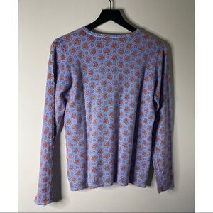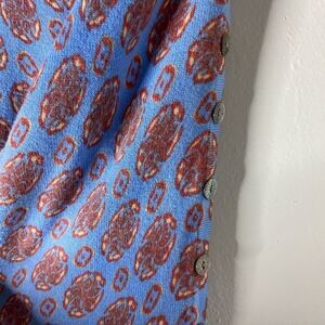 Patterned Crewneck sweater from J. McLaughlin. Cotton/Modal/Spandex. Button detail at sleeve. Size M. Approximate flat lay measurements- Bust: 19” across from armpit to armpit. Length: 24”. Gently preowned condition with no visible flaws.