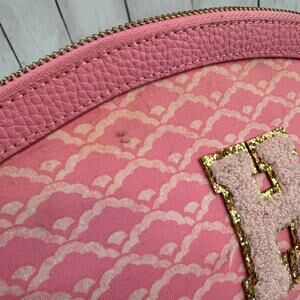 J. McLaughlin Pink Initial "H" Makeup Bag Gold Leather Zipper
