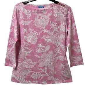 J. McLaughlin Pink & White Peacock Floral Print Signature Tee Small