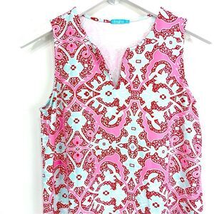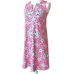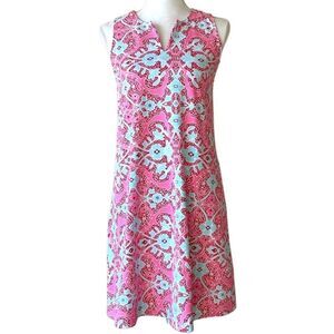 J. McLaughlin Pink Light Blue Floral Scroll Sleeveless Shift Athleisure Dress
