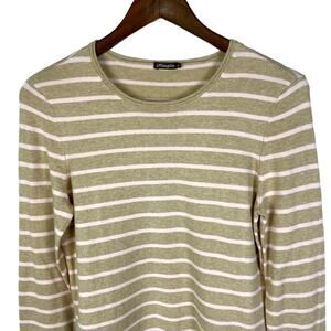 J. McLaughlin Poet Tan & Pink Stripe Modal Blend Long Sleeve Knit Sweater