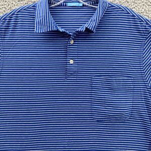 J. McLaughlin Polo Shirt Mens Medium Blue Striped Golf Preppy Tennis core Sports