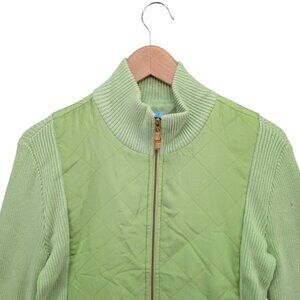 J McLaughlin Quilted Silk Sweater Jacket Womens Lime Green Full Zip Size M
