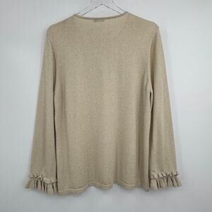 J. McLaughlin Rayne sweater XL pullover ruffle metallic gold shimmer holiday