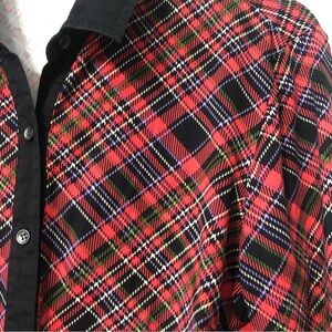 J. McLaughlin Red Plaid Black Trim Button Down Long Sleeve Blouse Medium