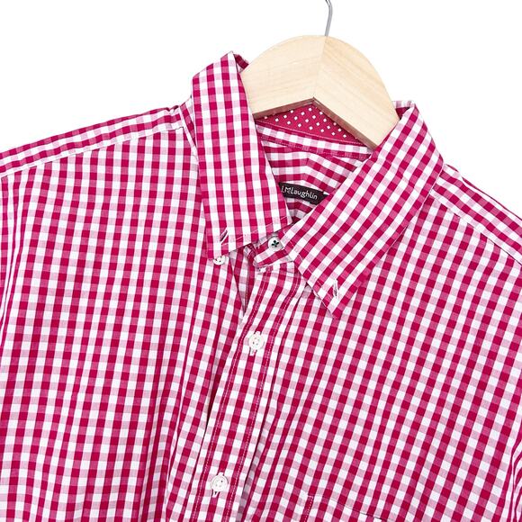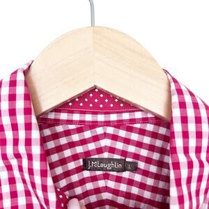 J. McLaughlin Red White Plaid Long Sleeve Button Down Sz L