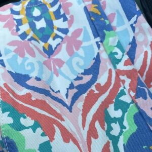 These J. McLaughlin trousers showcase a striking red and blue and multicolored flower-inspired print, perfect for adding a touch of elegance to your wardrobe. Crafted from a stretchy fabric, they offer a comfortable fit while maintaining a sophisticated look. Ideal for both casual and formal occasions, these trousers are a versatile addition to any closet. Like new condition