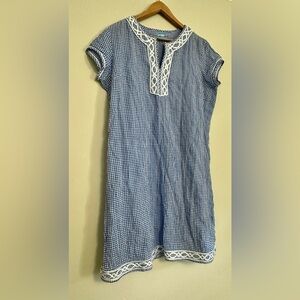 J. McLaughlin Rhett Blue Gingham Dress Size L – Embroidered Cotton Summer Tunic