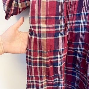 J. McLaughlin Rivera Plaid Linen Dress Size Medium Red/Blue Button Front