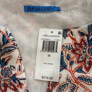 J. McLaughlin Rue Coral/Blue Linen Floral Sleeveless Shift Dress Medium NEW $218