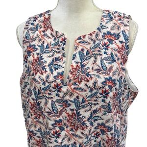 J. McLaughlin Rue Coral/Blue Linen Floral Sleeveless Shift Dress Extra Large NEW $218