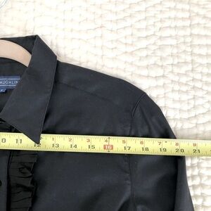 J. McLaughlin Ruffle Front Button Down Shirt Black Cotton Blouse Size 6 EUC