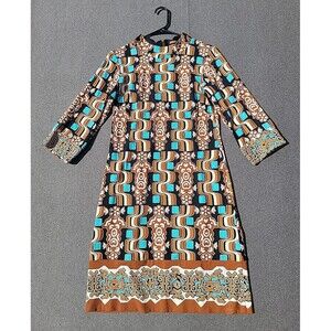 J McLaughlin S Brown Turquoise Biscayne Polynesian Shift Dress 862