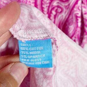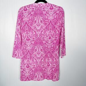 J McLaughlin S Pink White Paisley Printed Tunic Top Catalina Cloth Split V Neck
